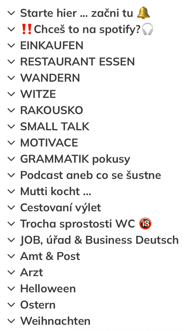 Sedni si na kolotoč 🎠 nauč se fráze, slovní zásobu pro: nákupy, restauraci, turistiku, vaření, co se plete - fráze a idiomy, small talks, vtipy, kostel, kultura a tradice z pohledu rodiláka (jak to prostě chodí), vaření a nákupy, trocha intimity, střípky z konverzací mých studentů, job&CV, motivační dopis, doktor i úřednická němčina, sezónní specifická zásoba, zákulisní drby & humor & motivační videa a to vše dvojjazyčně a s titulky